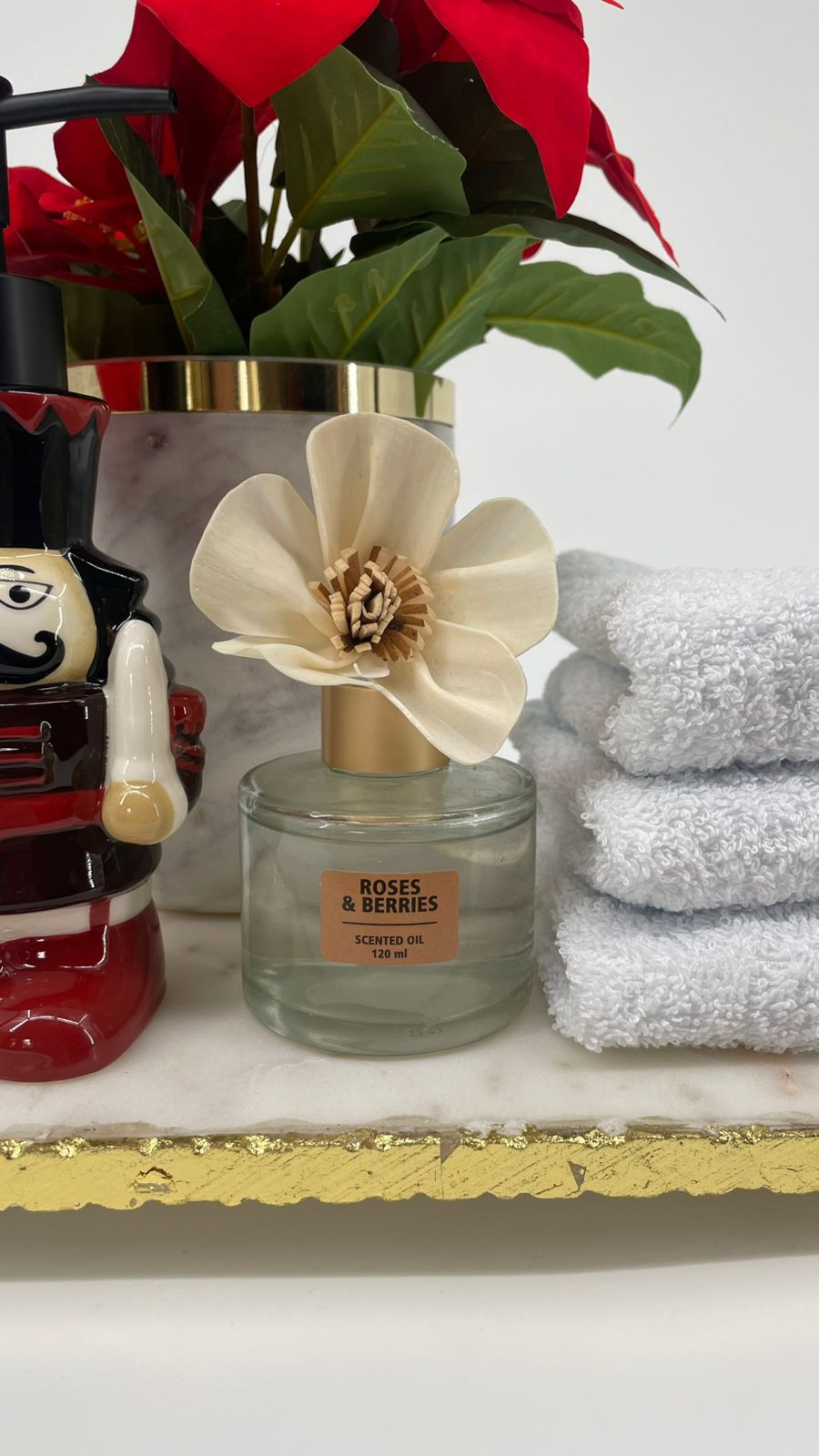 Fragancia Ambiental forma de flor con aroma de rosas y frutos del bosque.