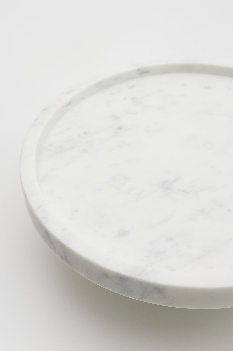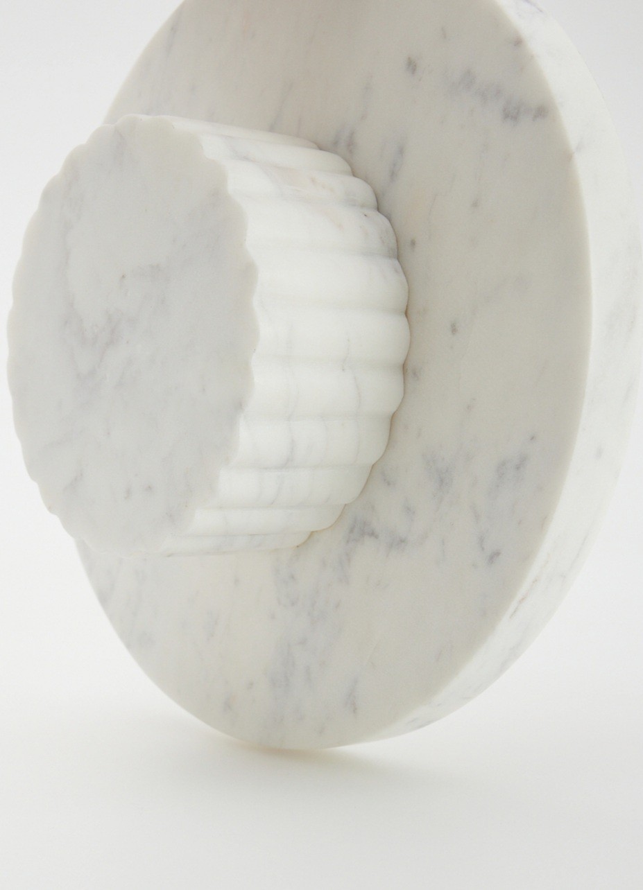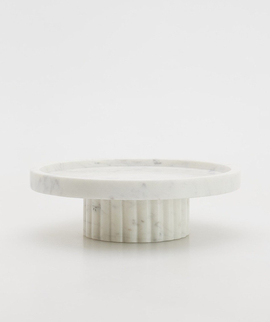 Base de altura de mármol blanco calidad premium con diseño scalloped, ideal para servir o decoración.