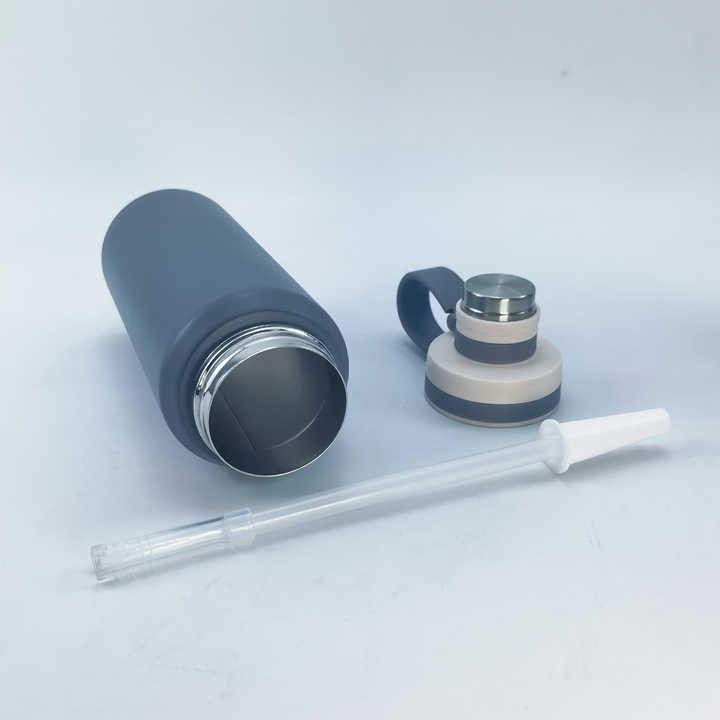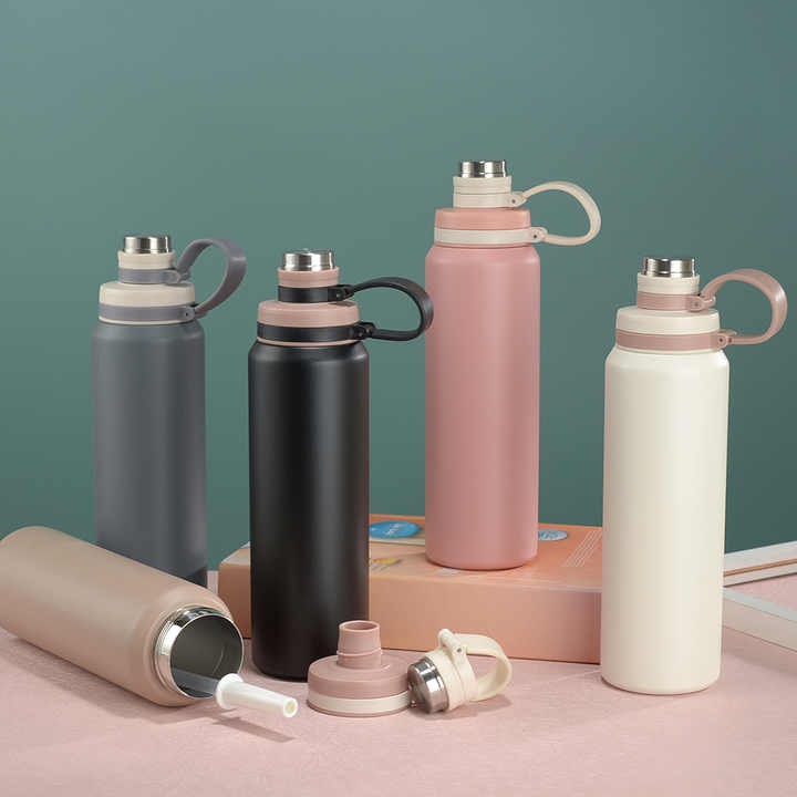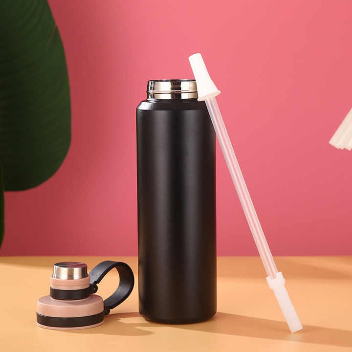 Botella para agua de 800 ml de acero inoxidable Tapón de rosca fácil para transportar y cómodo gracias a la asa de mano, incluye pajilla.