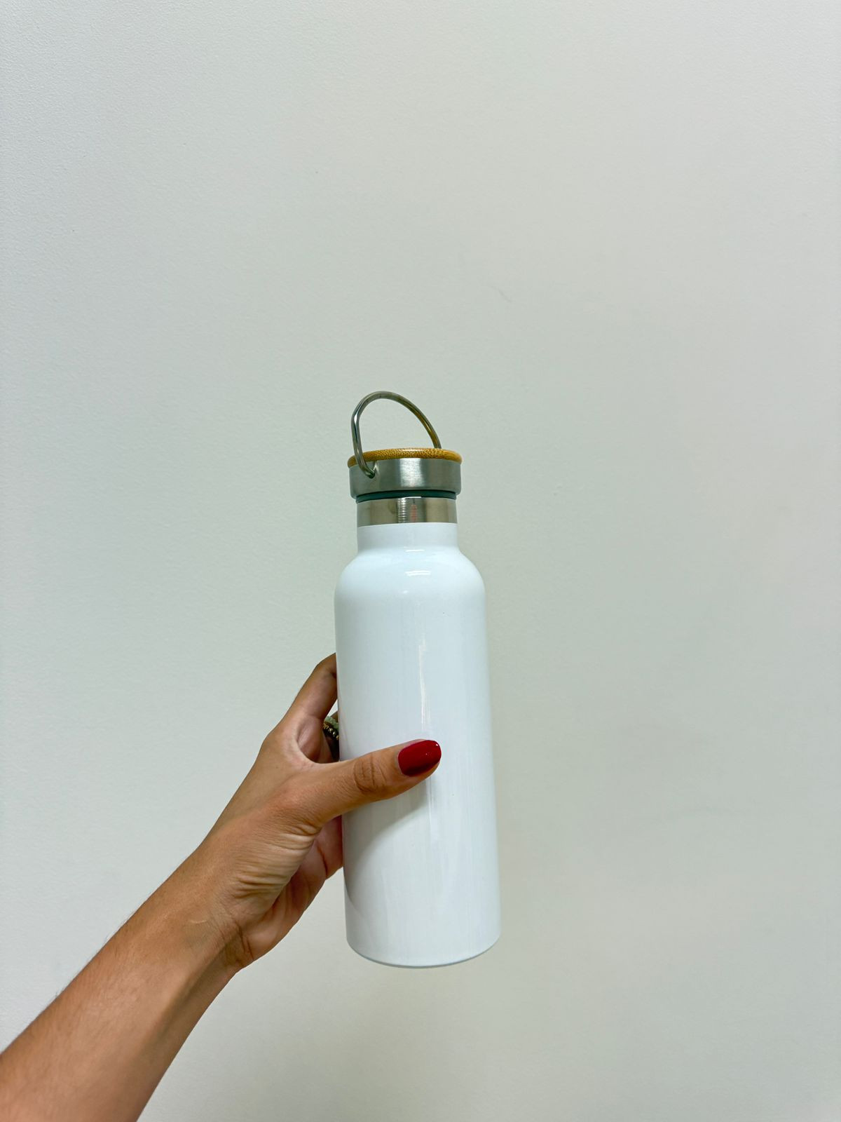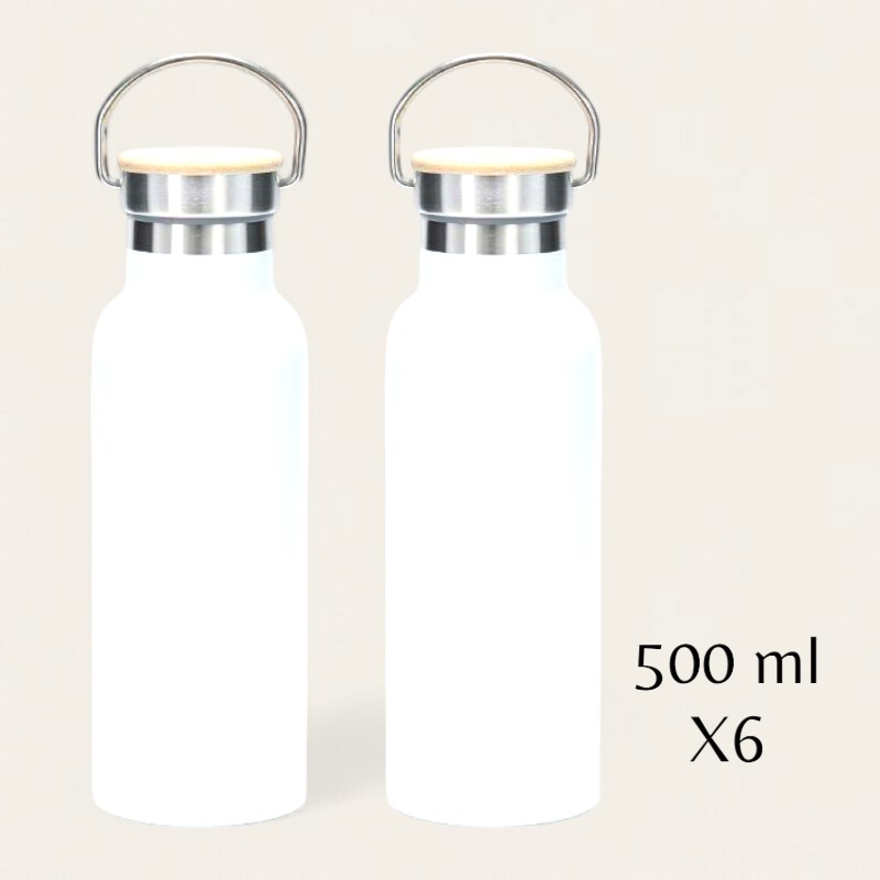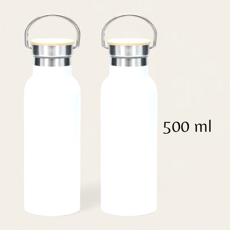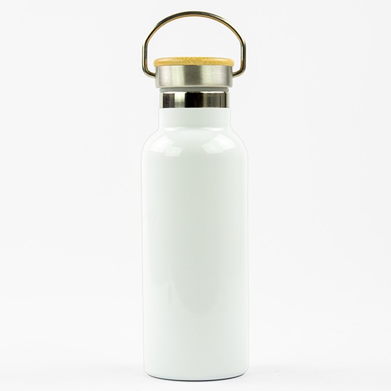 Botella térmica para sublimar, tapa bambú con asa.