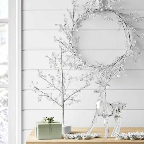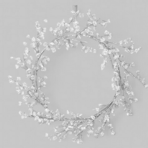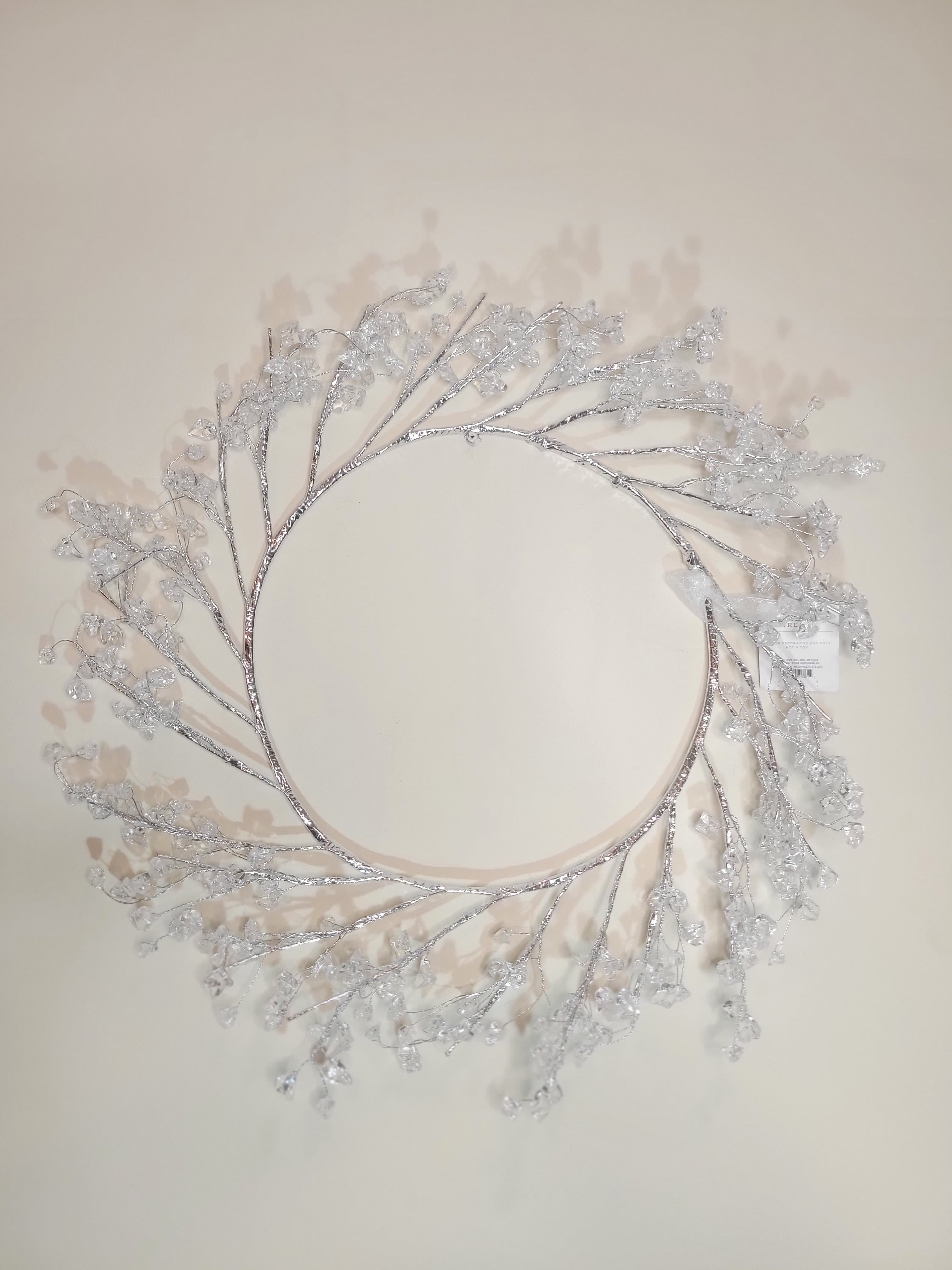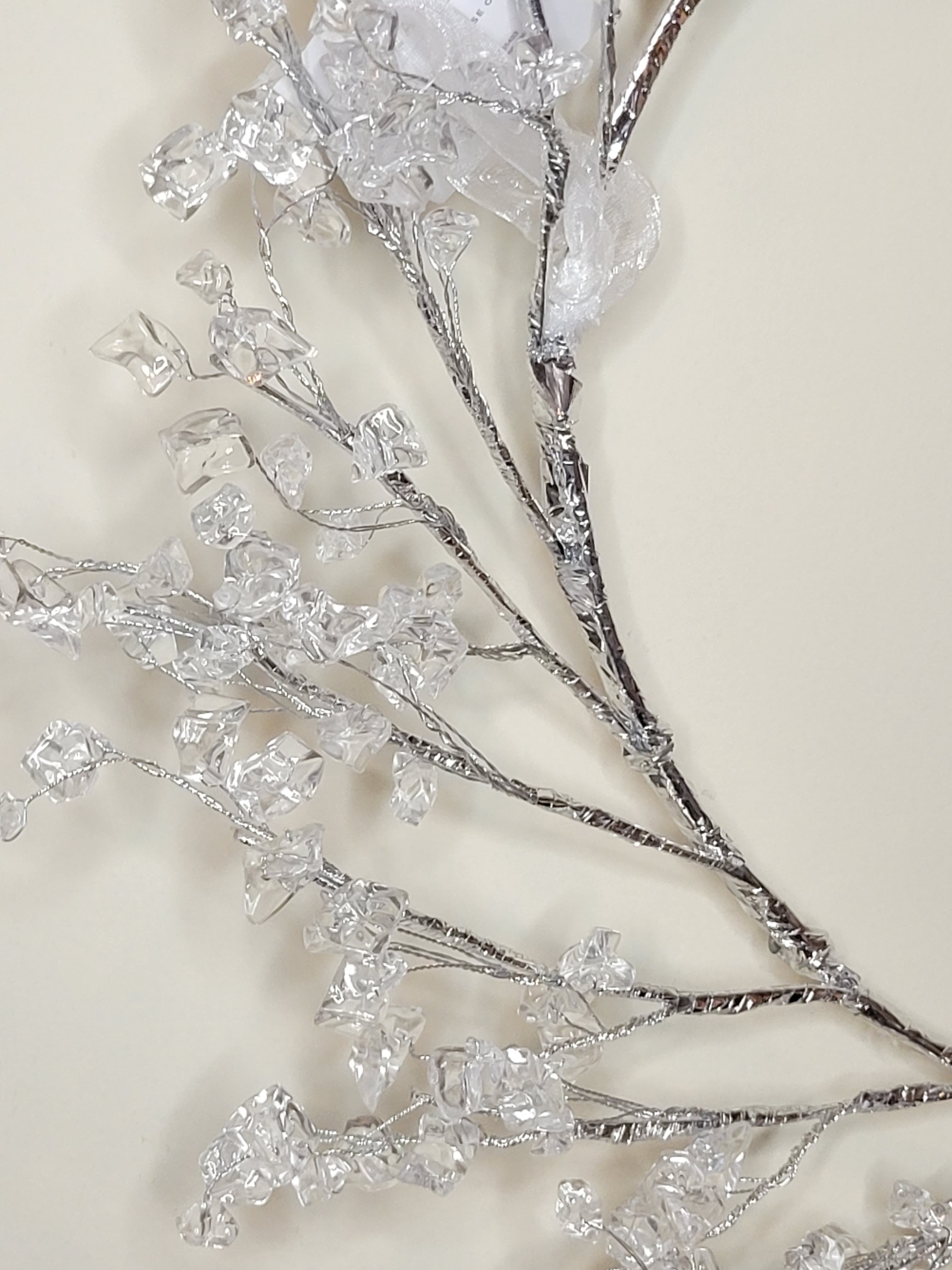Corona decorativa para una navidad blanca delicada y sofisticada, hecha de cristales acrílico, más allá de las puertas, usala para centro de mesa, chimeneas, consolas entre otras opciones.