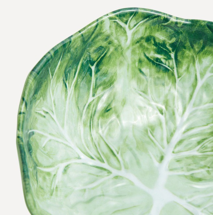 Esta temporada lleva la frescura de las verduras a tu mesa con la colección Veggies. Una serie de piezas inspiradas en vegetales como esta ensaladera con forma y dibujo de lechuga, ideal para servir ensaladas de manera original y divertida.