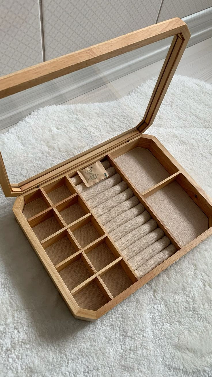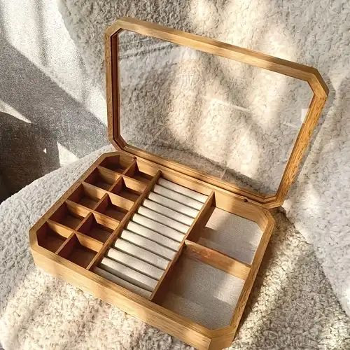 Joyero de madera bambú, ideal para organizar en vanidad de dormitorio y baño. Dale un toque elegante y orden a tu joyería con este precioso joyero moderno.