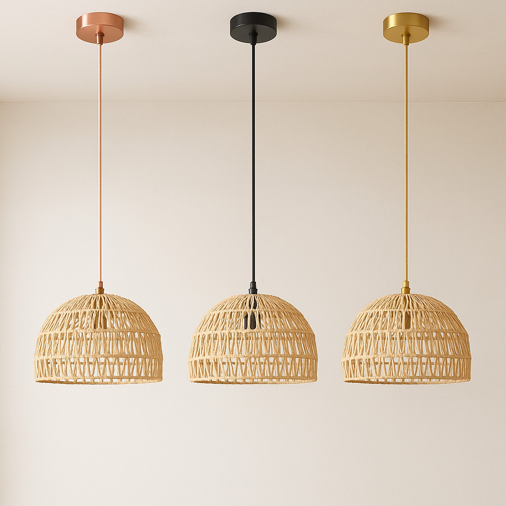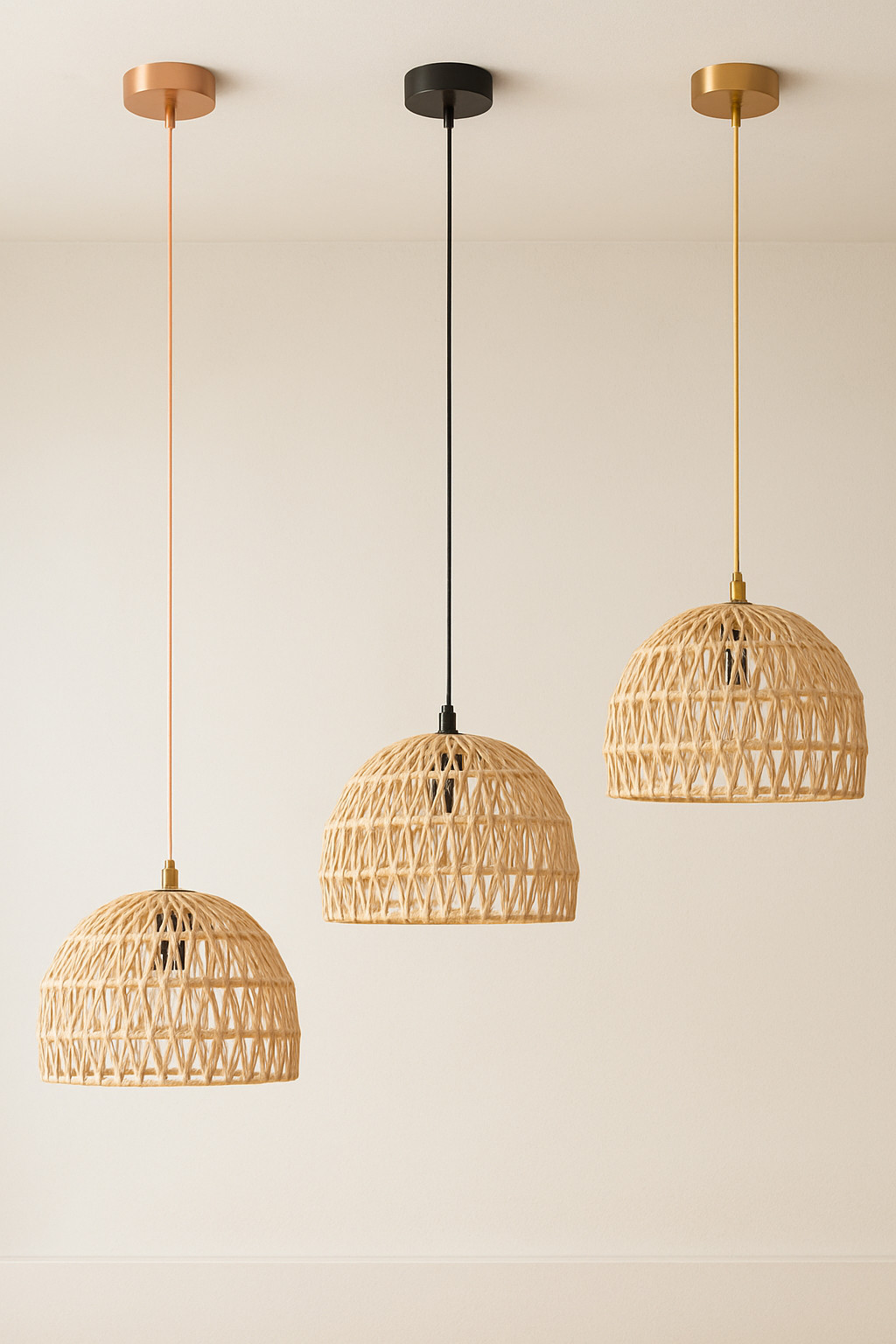 Lámpara colgante de ratán eléctrica, moderna, con toque natural lista para iluminar. Su material resistente permite usarlo tanto como exteriores e interiores para tu hogar sofisticados, oficina, restaurante y proyectos profesionales.