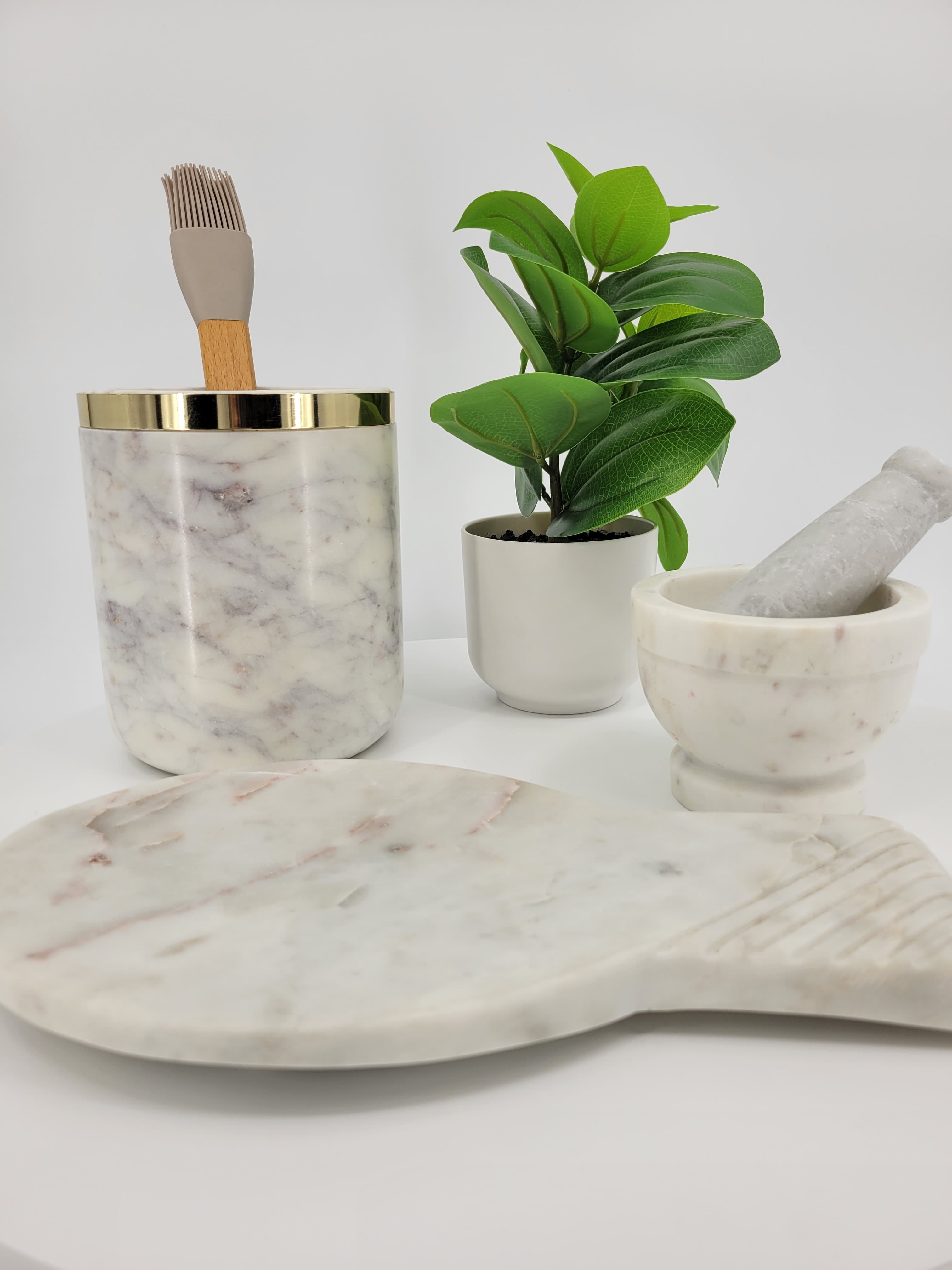 Planta en macetera de melanin con cemento.